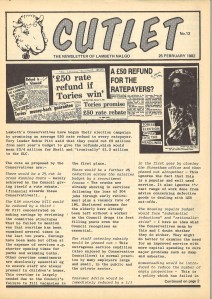 The Cutlet was edited by Jackie Lewis, a local trade union stalwart who as of 2018 is still active at the Council on behalf of Lambeth UNISON.