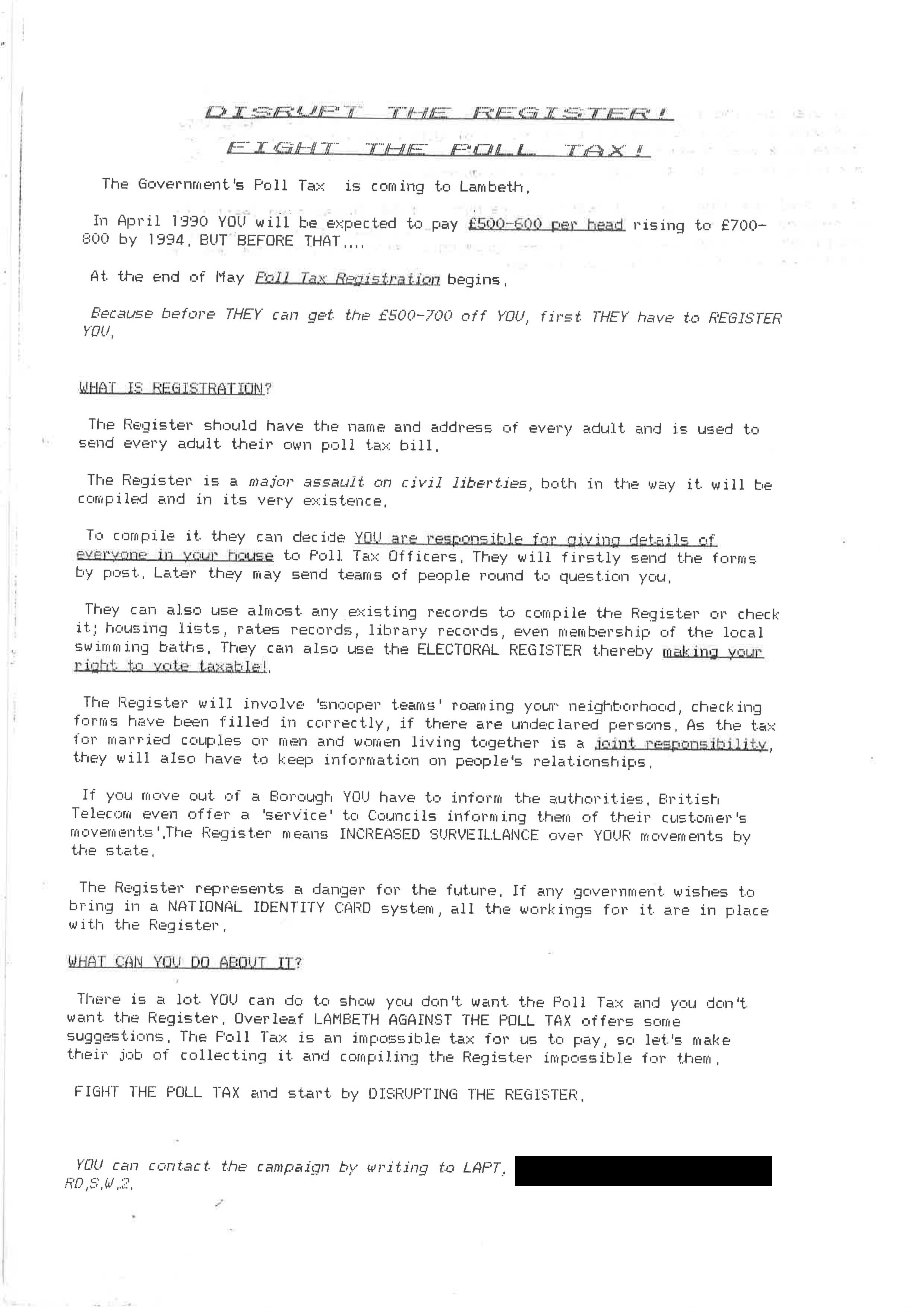 disrupt the register – lambeth 1