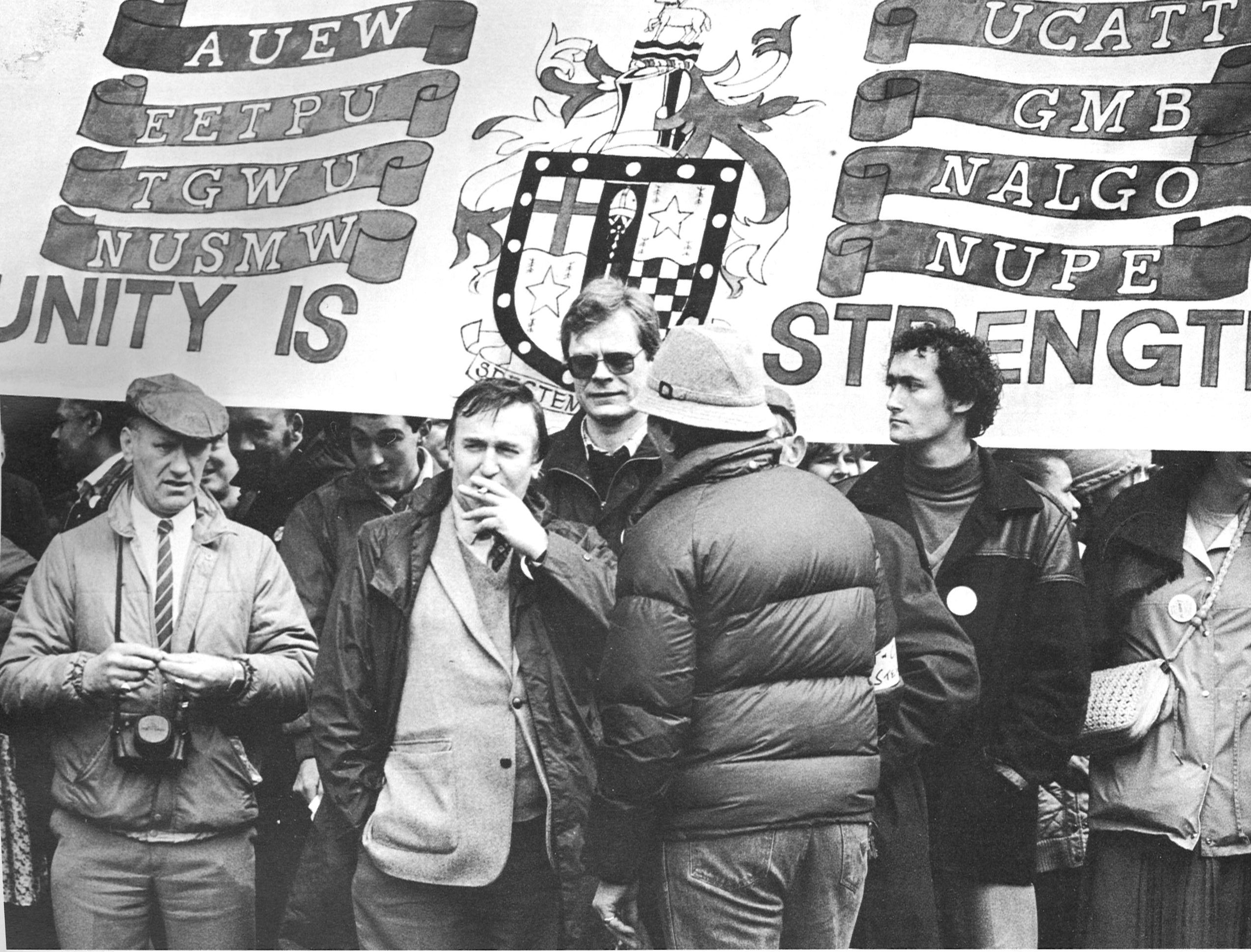 Ted Knight marching with trade unionists, 1985